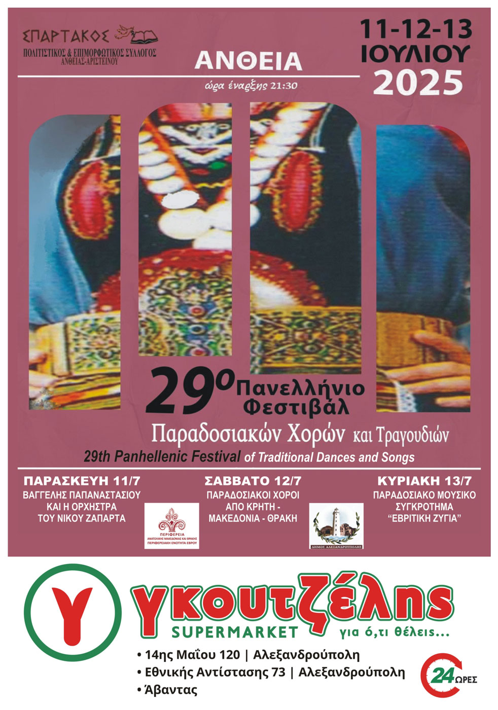 29ο ΠΑΝΕΛΛΗΝΙΟ ΦΕΣΤΙΒΑΛ ΠΑΡΑΔΟΣΙΑΚΩΝ ΧΟΡΩΝ ΚΑΙ ΤΡΑΓΟΥΔΙΩΝ 2025