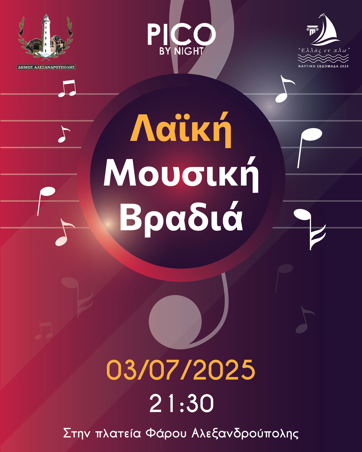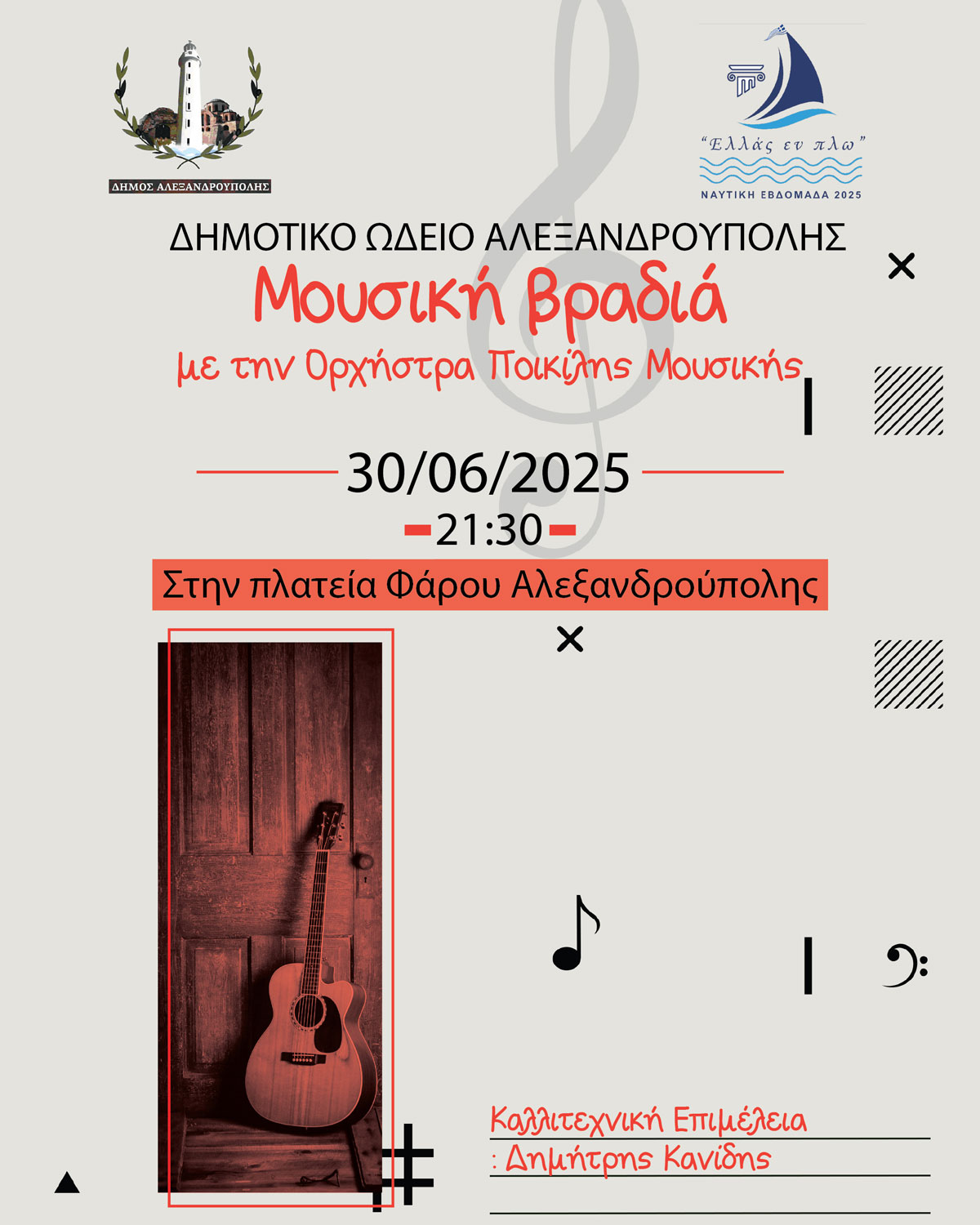 Αλεξανδρούπολη Αλεξανδρούπολη, Greece18:30 : Τέλεση εσπερινού στον Ιερό Μητροπολιτικό Ναό Αγίου Νικολάου με υποδοχή της εικόνας της Παναγίας Κοσμοσώτειρας, από τον Μητροπολίτη Αλεξ/πολης κ.κ Άνθιμο. 19:00 : Συγκέντρωση συλλόγων- σωματείων στην πλατεία Φάρου. 20:15: Έναρξη πατινάδας στην παραλιακή οδό της πόλης με κατάληξη το Δημοτικό Στάδιο < Φώτης Κοσμάς>. 21:00 : Χαιρετισμοί επισήμων. 21:15 : Έναρξη χορευτικού...