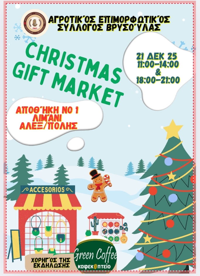 Ο Αγροτικός Επιμορφωτικός Σύλλογος Βρυσούλας κατεβαίνει στο λιμάνι της Αλεξανδρούπολης και φέρνει τα Χριστούγεννα στην Αποθήκη Νο 1! Ελάτε να περάσουμε μια όμορφη Κυριακή, να στηρίξετε τον Σύλλογό μας και...