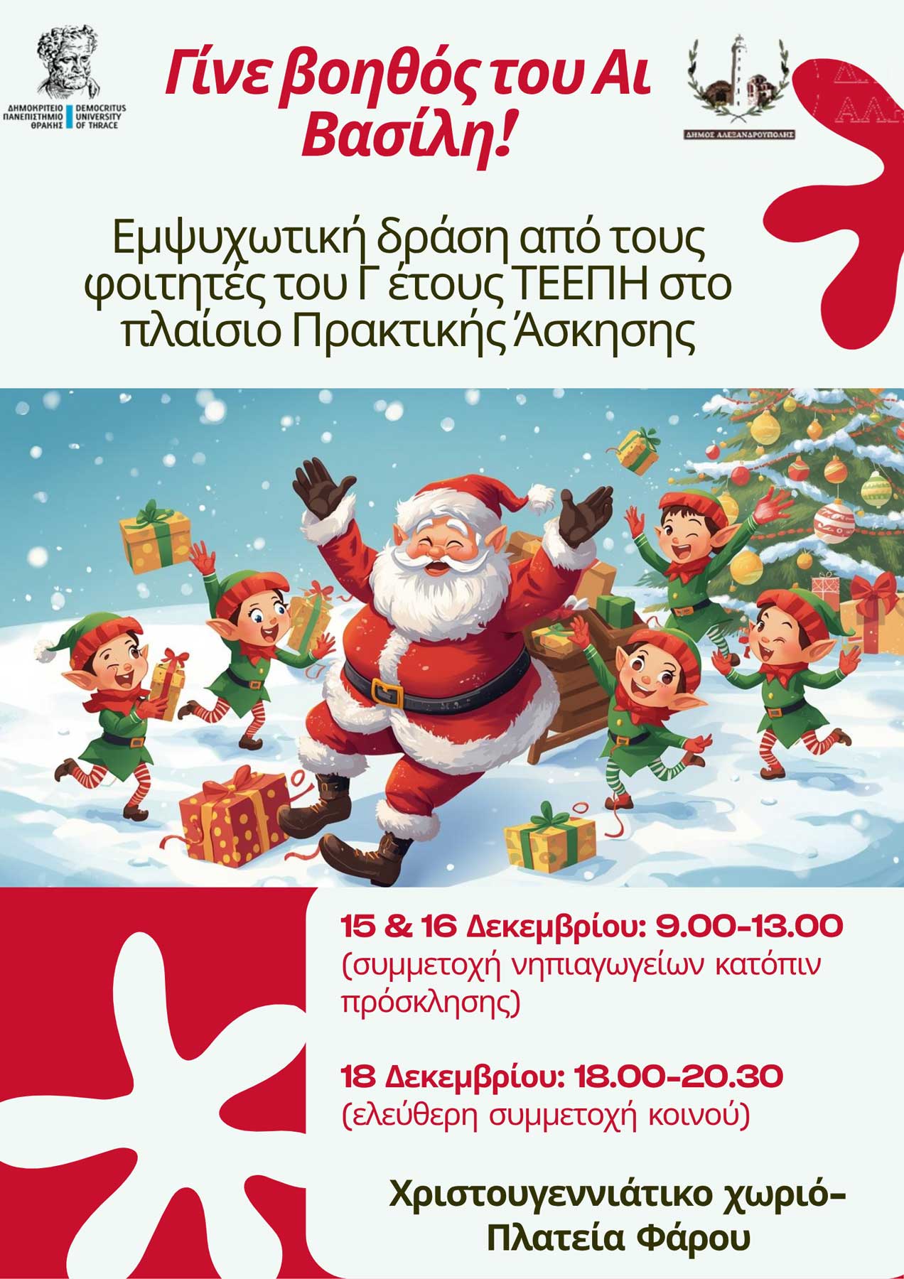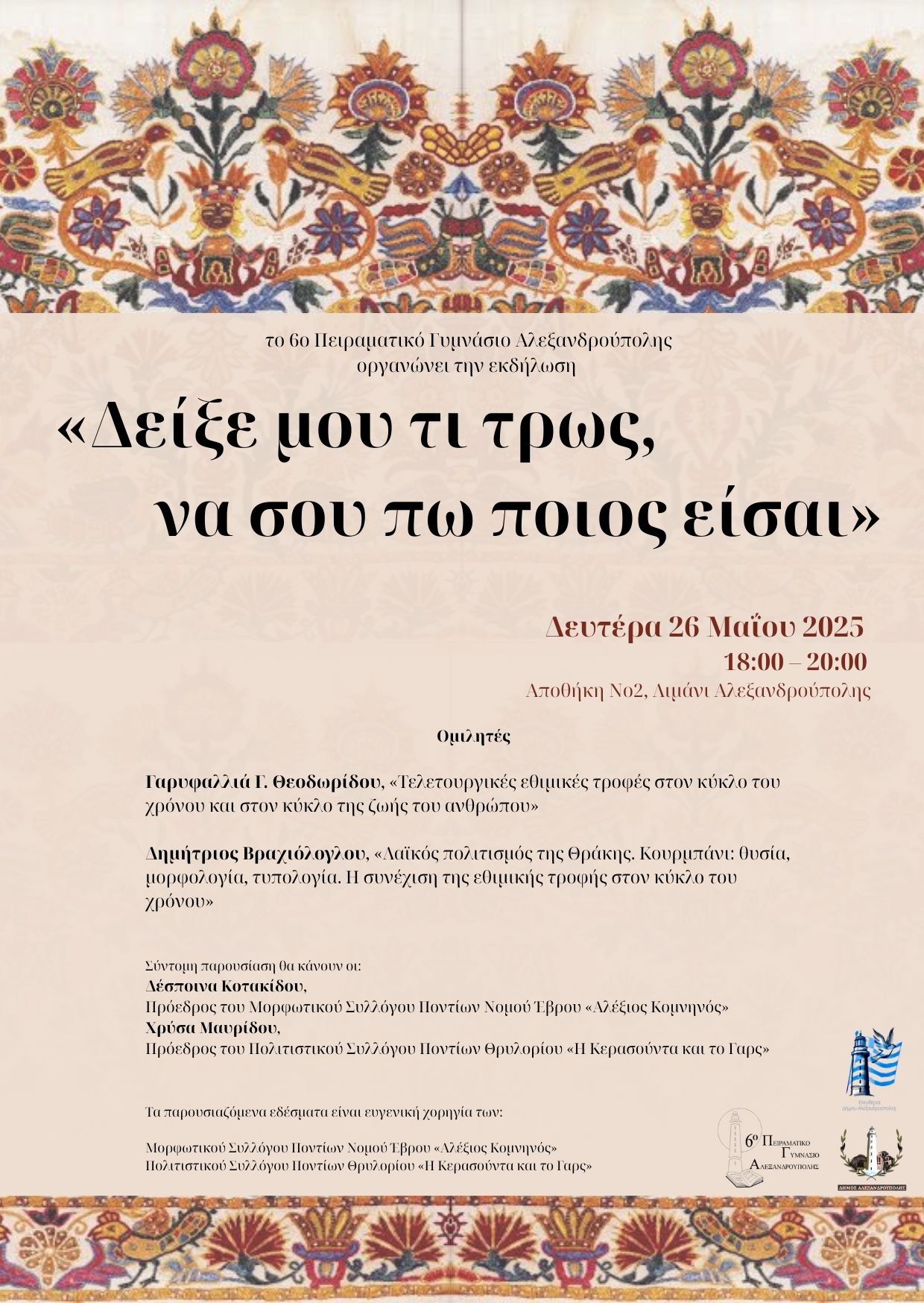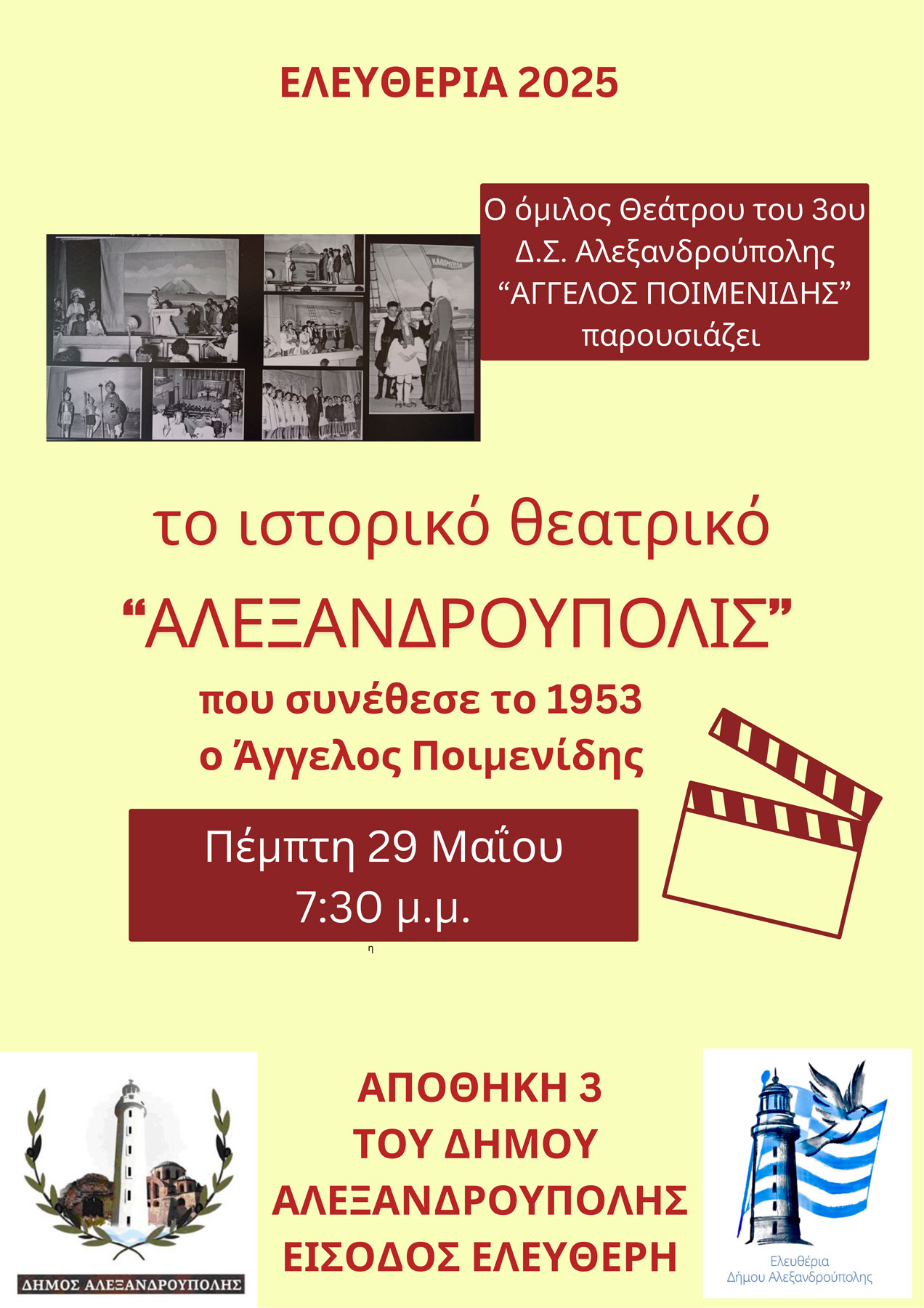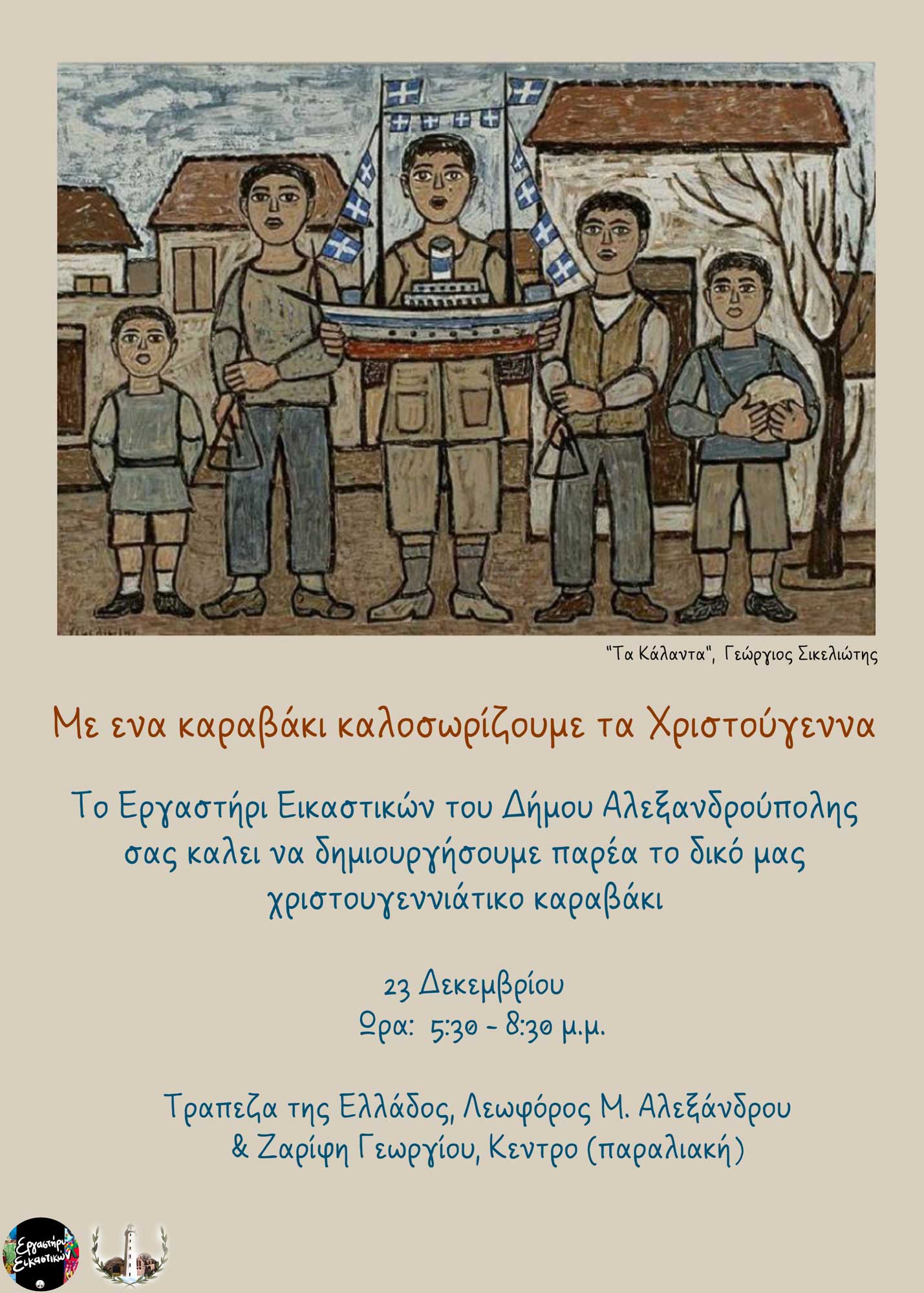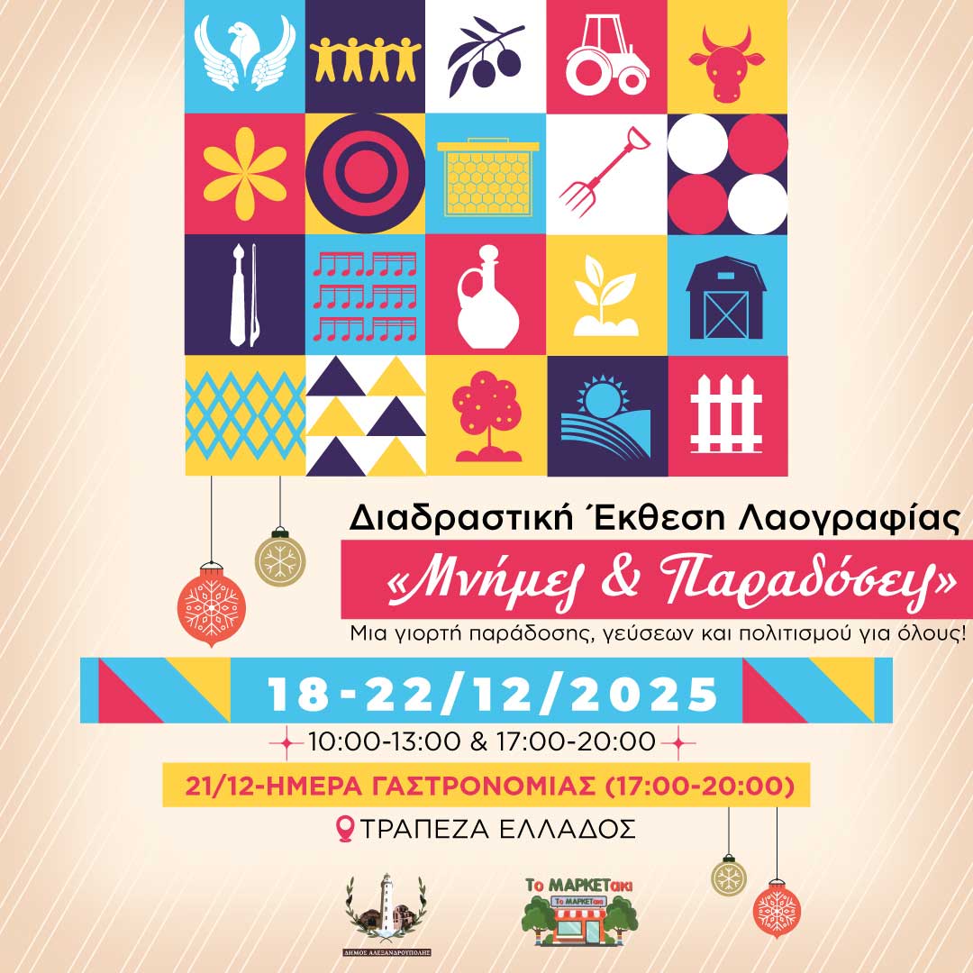 Με αφορμή τη συμπλήρωση 30 χρόνων αδιάλειπτης λειτουργίας και προσφοράς στα πολιτιστικά δρώμενα της πόλης, το Εργαστήρι Εικαστικών του Δήμου Αλεξανδρούπολης διοργανώνει μεγάλη επετειακή έκθεση με έργα των μαθητών του. Η έκθεση θα φιλοξενηθεί στο κτήριο της Τράπεζας της Ελλάδος (Λεωφόρος Β. Αλεξάνδρου, παραλιακή) και αποτελεί μια γιορτή χρωμάτων, φαντασίας και δημιουργικής έκφρασης. Μέσα από...